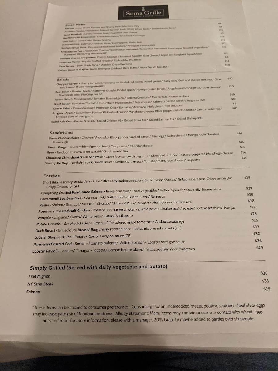 Welcome to Soma Grille, a culinary gem nestled in Simsbury, CT. Known for its inviting ambiance and attentive service, this eatery offers a menu that expertly fuses classic American dishes with a modern twist. At Soma Grille, indulgence begins with delectable small plates and shareables. Treat your taste buds to the Calamari Fritti or Sesame Seared Tuna, showcasing a perfect blend of flavors. For sandwich lovers, their Tavern Burger and Shrimp Po Boy deliver hearty satisfaction. The “Simply Grilled” section presents premium steaks and salmon, cooked to perfection. A recent review highlighted the flavors of the half chicken and vegan risotto, catering to diverse dietary preferences. Soma Grille promises a delightful dining experience, whether you’re looking for a casual bite or a special occasion feast. Relish the thoughtful presentation and quality ingredients, all while enjoying a cozy yet elegant atmosphere.